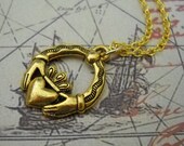 The Claddagh symbol is a traditional Irish design which have the symbolic meaning "Let Love and Friendship Reign".The elements of this symbol are often said to correspond to the qualities of love (the heart), friendship (the hands), and loyalty (the crown).