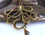 A beautiful, detailed brass mermaid charm is embellished with a vintage look filigree finding along with fire polished gold faceted czech glass beads. The antiqued brass chain and lobster clasp are 21 inches long. Enter my shop here: LucindasCharms.etsy.com